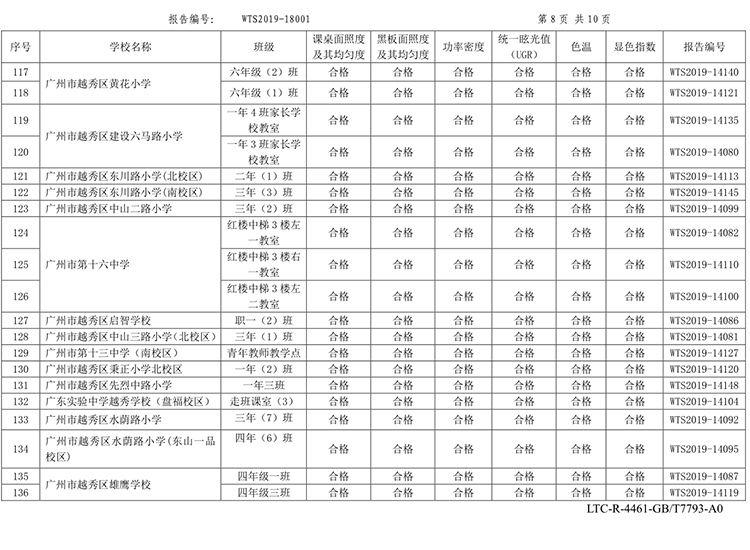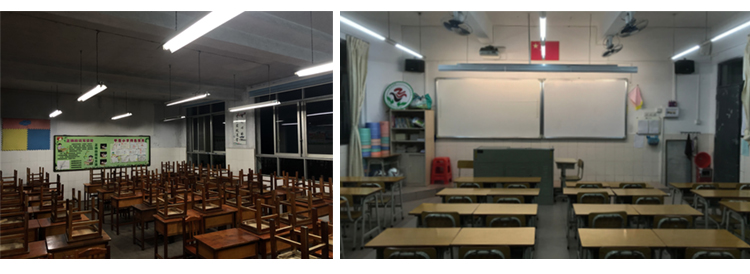 | 教室桌麵平均照(zhào)度 | ≥300lx | 133lx | 低於國標要求 | 723.5lx | 優於國標 |
