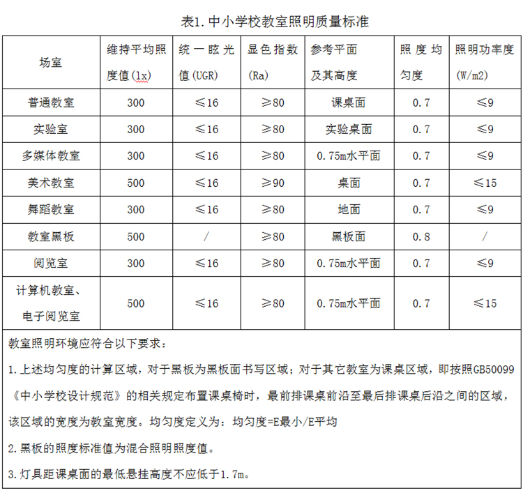 照普通中小學校、中等職業學校建設標準(zhǔn),落實教室、宿舍、圖書館(閱(yuè)覽室)等(děng)采光和照明要