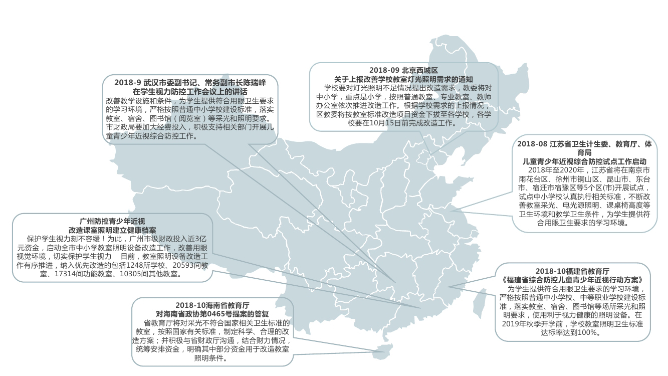(2) 近視誘發最大的場所在學校,中小學生(shēng)60%的時間是在(zài)教室活動,且近視患者正逐年增長。