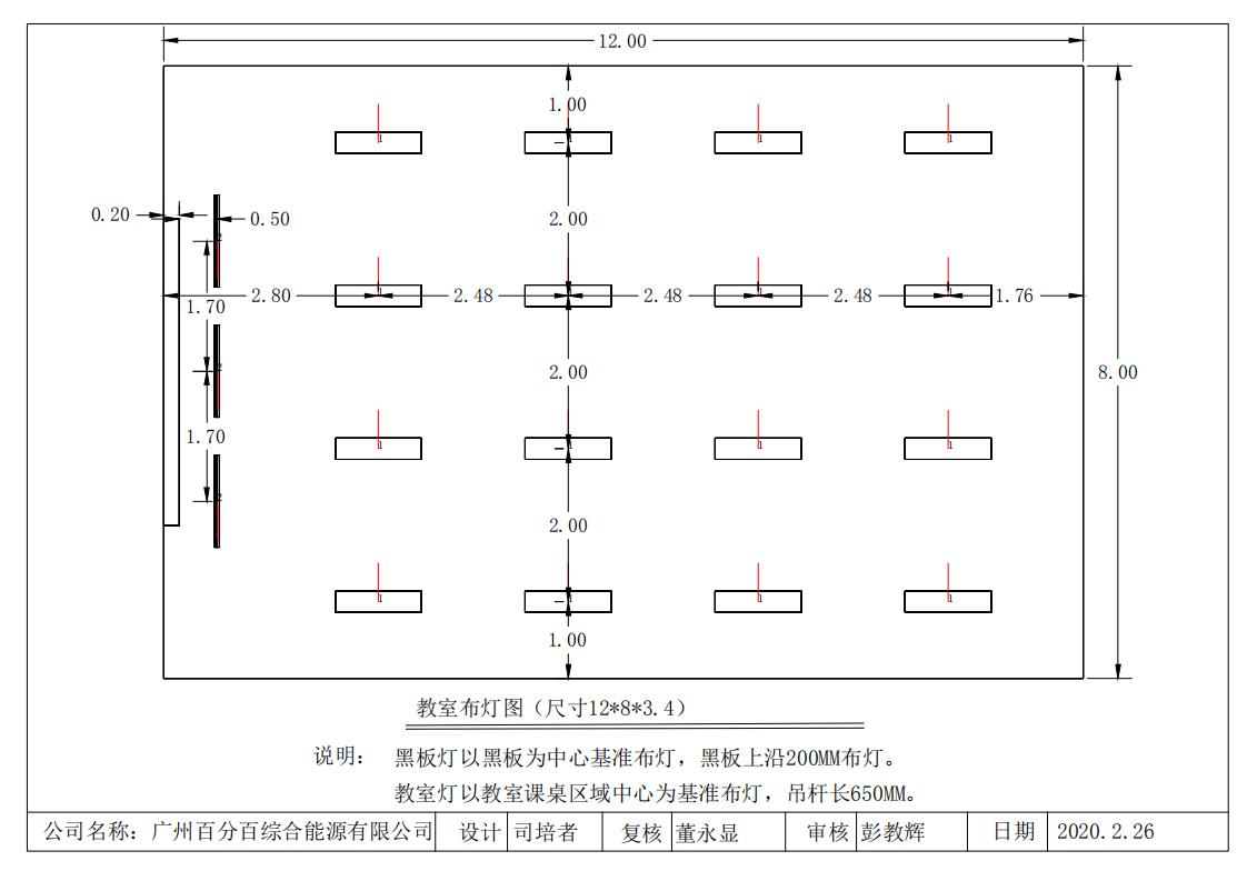 黑板燈離黑板安(ān)裝距離及布燈(dēng)效果圖